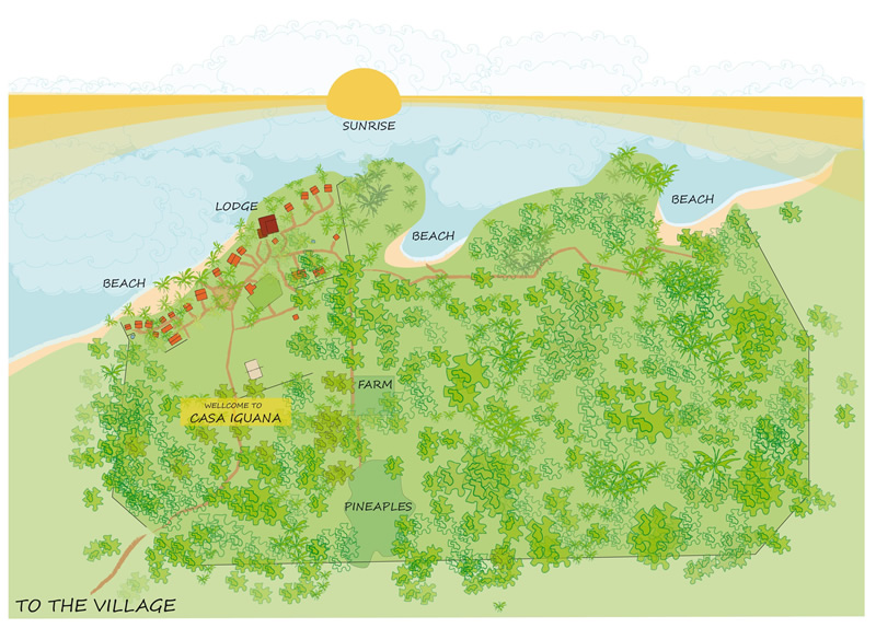 Distance to Beach/Key Features: Casa Iguana’s cabins are located on the water, providing direct access to the ocean and a beautiful natural setting.