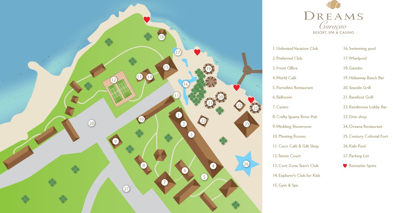 View or download the Dreams Curacao Resort, Spa & Casino orientation map here: