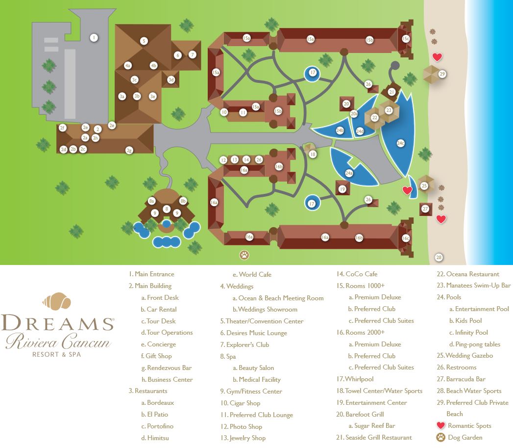 View or download the Dreams Riviera Cancun Resort & Spa orientation map here: