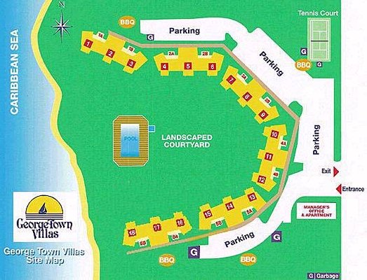 Resort Style and Construction: George Town Villas is a condominium-style resort offering a blend of comfort, privacy, and Caribbean charm. The architecture is typically Caribbean, featuring bright colors and spacious layouts, set amidst well-manicured gardens and overlooking the ocean.