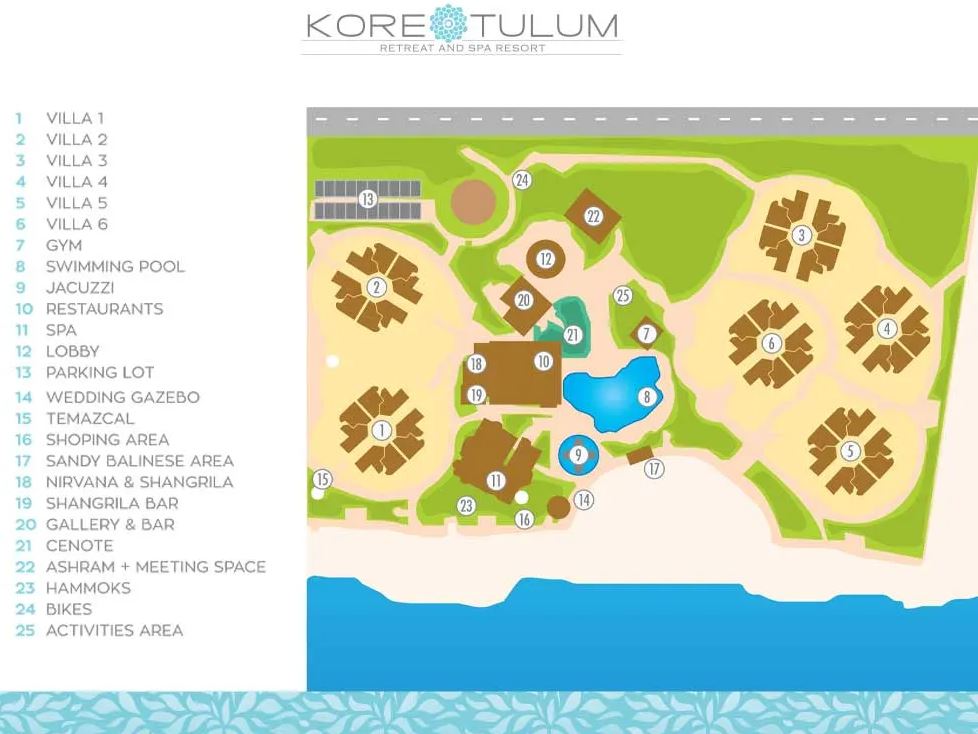 View or download the Kore Tulum Retreat and Spa Resort orientation map here: