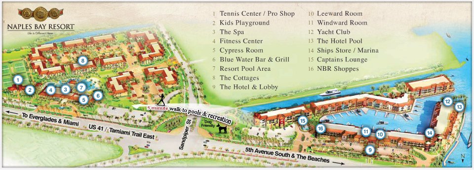 Amenities: Naples Bay Resort probably offers an array of amenities such as swimming pools, a fitness center, a spa, dining options, and access to water activities, reflecting its waterfront location.