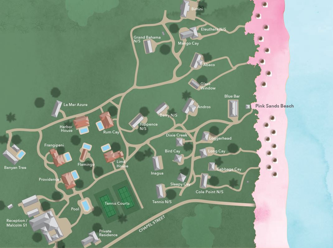 Distance to Beach/Key Features: Located directly on the famous pink sand beach, offering guests stunning beach views and easy access to beach activities.