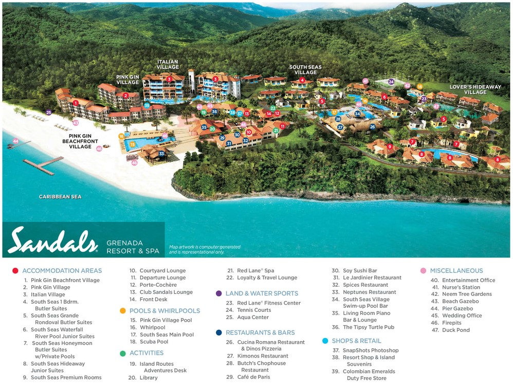 View or download the Sandals Grenada Resort & Spa orientation map here:
