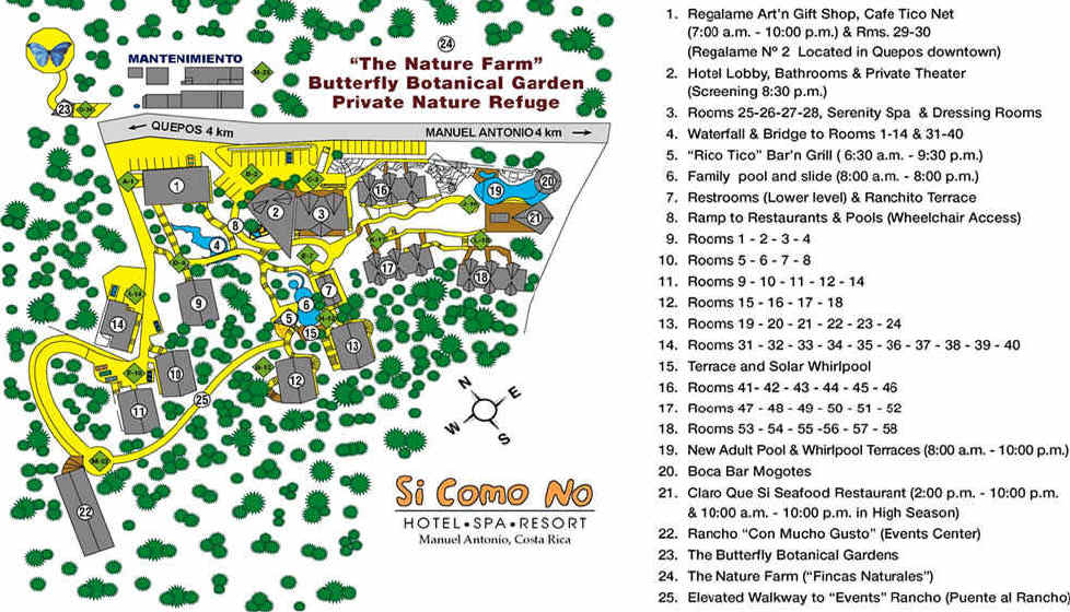 View or download the Si Como No Resort & Wildlife Refuge orientation map here:
