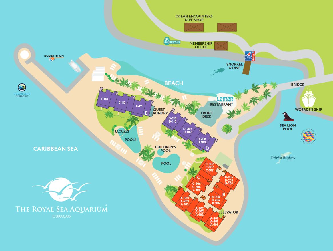 Resort Style and Construction: This resort is designed to offer a unique, intimate, and serene experience, featuring architecture that combines modern amenities with Caribbean influences. The Royal Sea Aquarium Resort is set against the backdrop of the famous Curacao Sea Aquarium and the stunning Caribbean Sea, offering picturesque views and a tranquil setting.