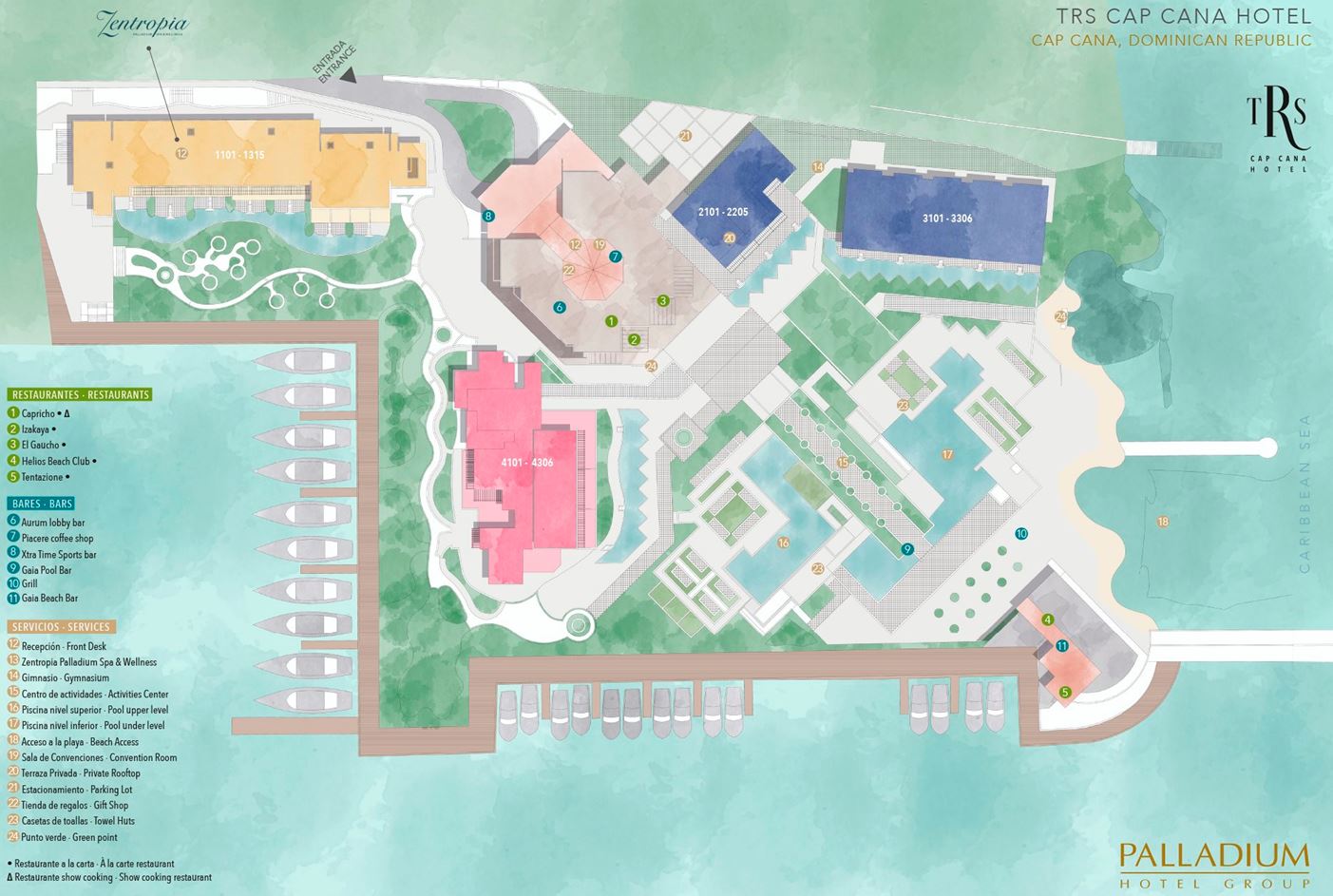 View or download the TRS Cap Cana Waterfront & Marina Hotel orientation map here:
