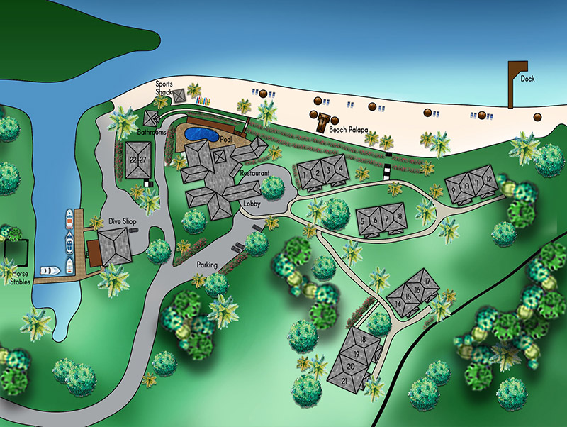 View or download the Turquoise Bay Dive & Beach Resort orientation map here: