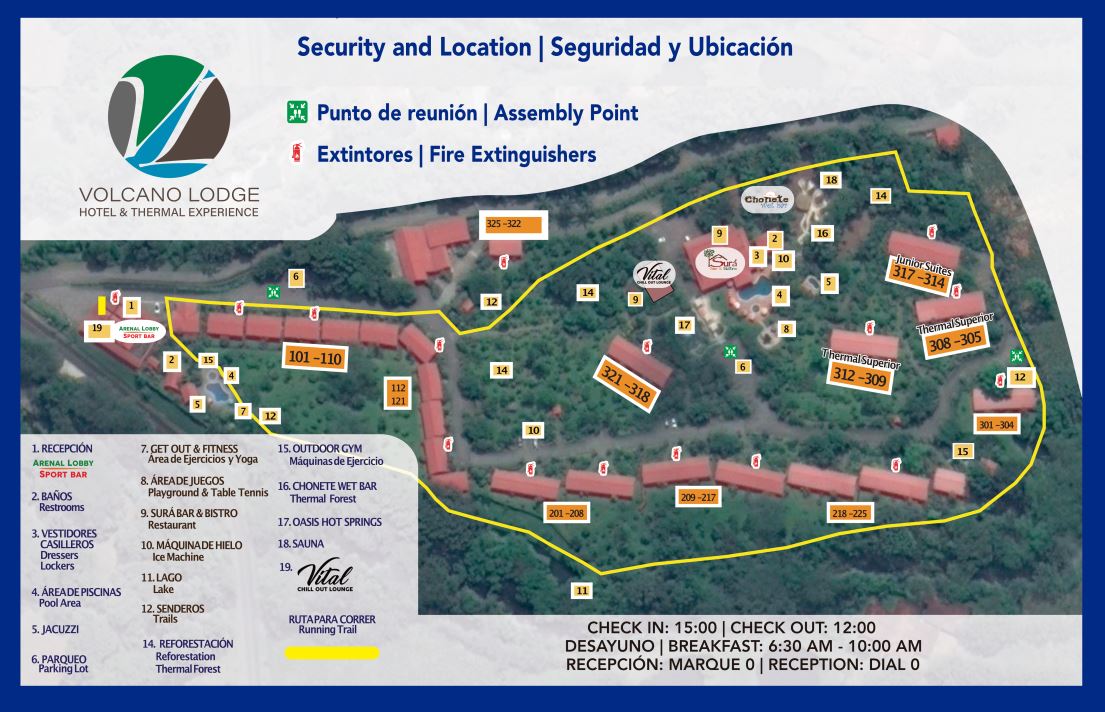 View or download the Volcano Lodge, Hotel & Thermal Experience orientation map here: